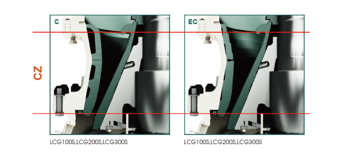 LUCKCOME LCG Series cone crushers can be easily adjusted for different production requirements. With a wide selection of cavities, the same crusher can be used in 2nd,3rd or 4th crushing stages, producing different end product sizes. The stroke change feature allows crusher through-